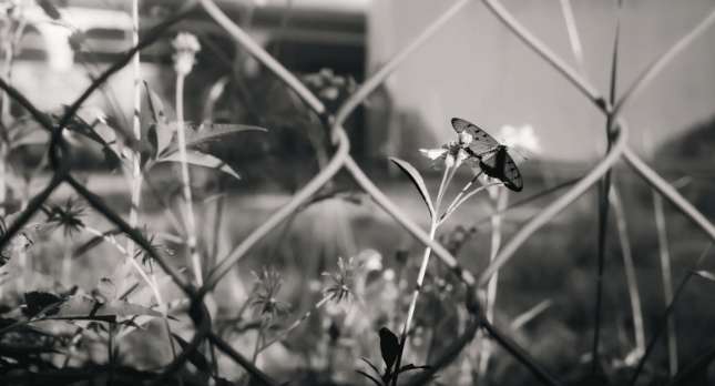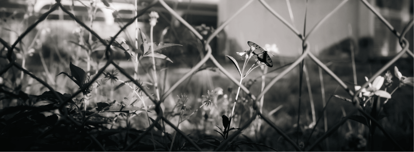 老家附近的 TNB 变电站,被篱笆网圈着,像一座小 小的牢笼。意外的是,里面竟长着几丛野花。一只 蝴蝶穿过网格,停在花上。 那一刻我想:牢笼里的野花和牢笼外的蝴蝶相遇, 或许是另一种温柔。